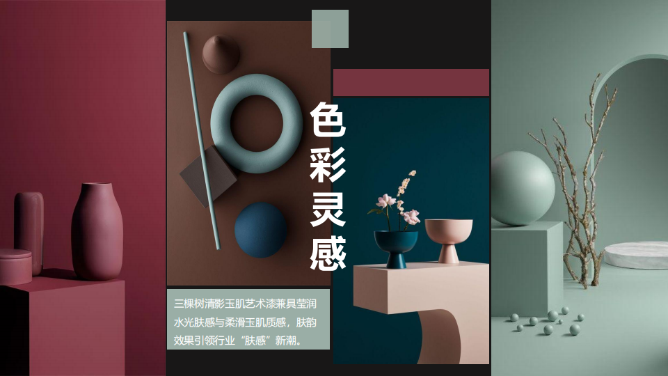 色彩灵感:清影玉肌艺术漆兼具莹润水光肤感与柔滑玉肌质感,肤韵效果带领行业“肤感”新潮。