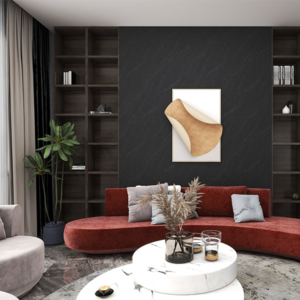 雅典石艺术漆,兼具硬度高、抗撞击和超长使用寿命等特点;纹理错落有致,细节丰富不失细腻,砂岩的粗犷质感平衡了空间的清冷,是现代装饰风格混搭的点晴之笔。