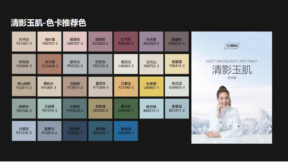 色彩灵感:清影玉肌艺术漆兼具莹润水光肤感与柔滑玉肌质感,肤韵效果带领行业“肤感”新潮。